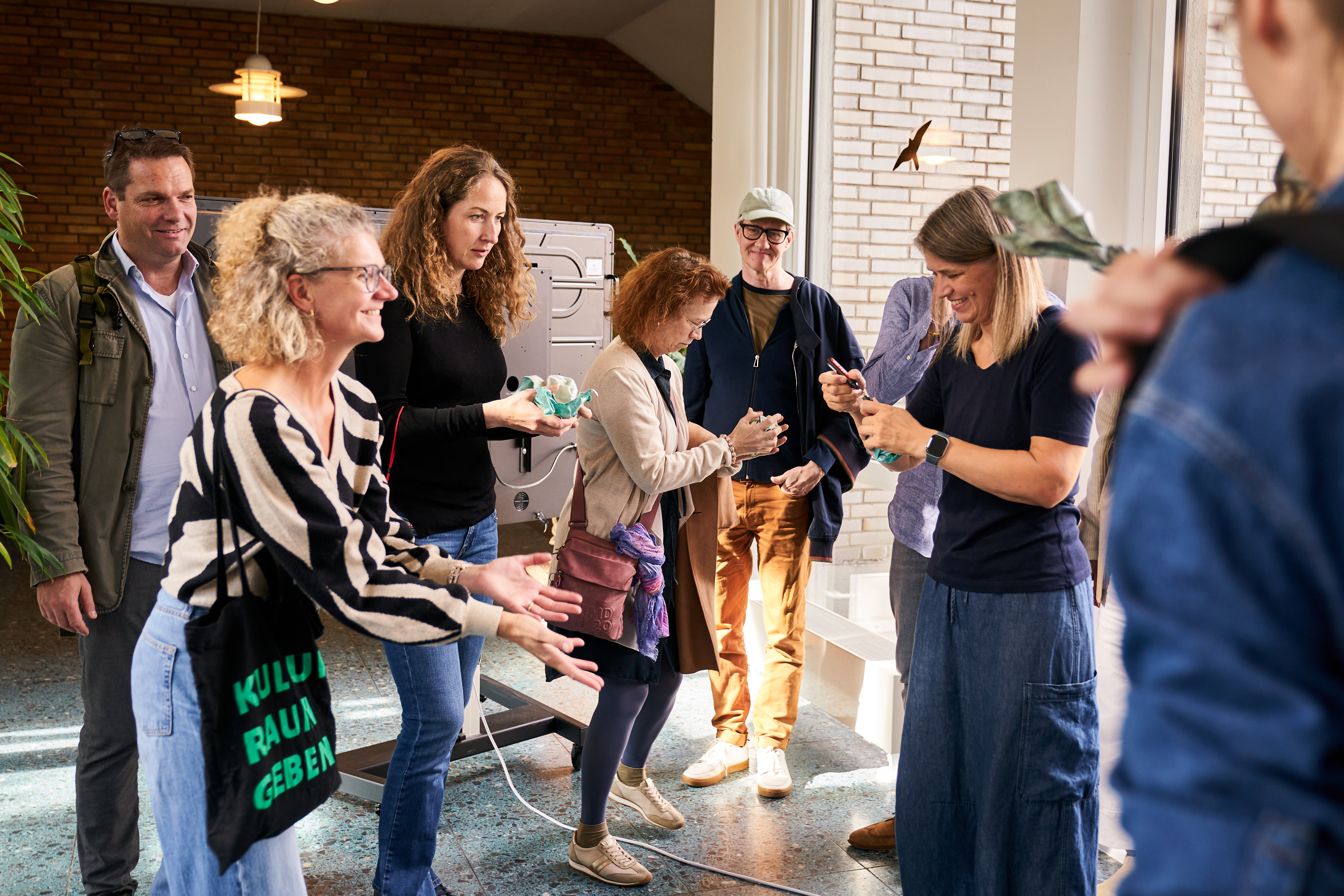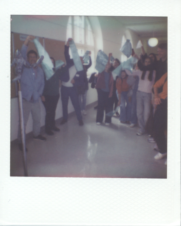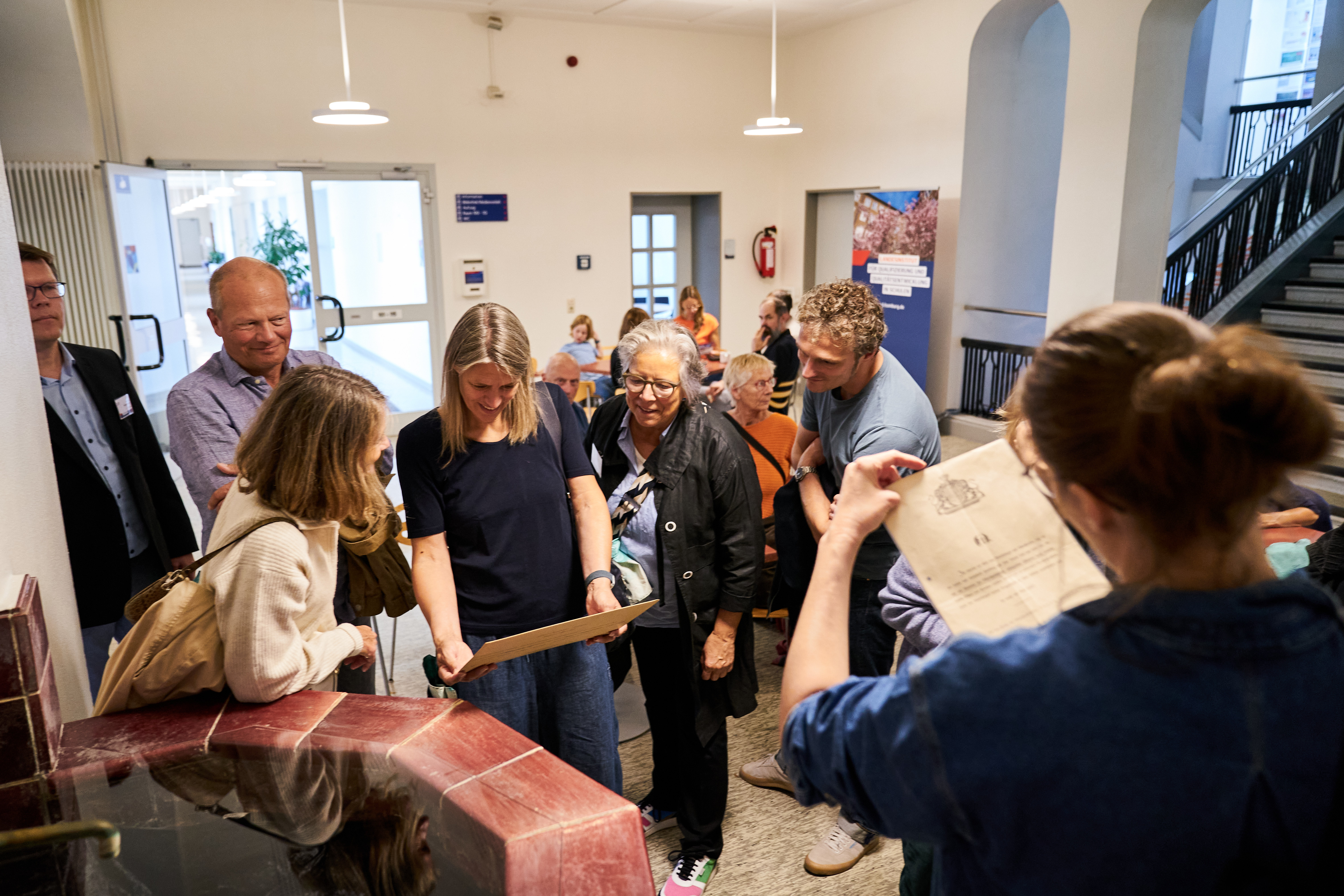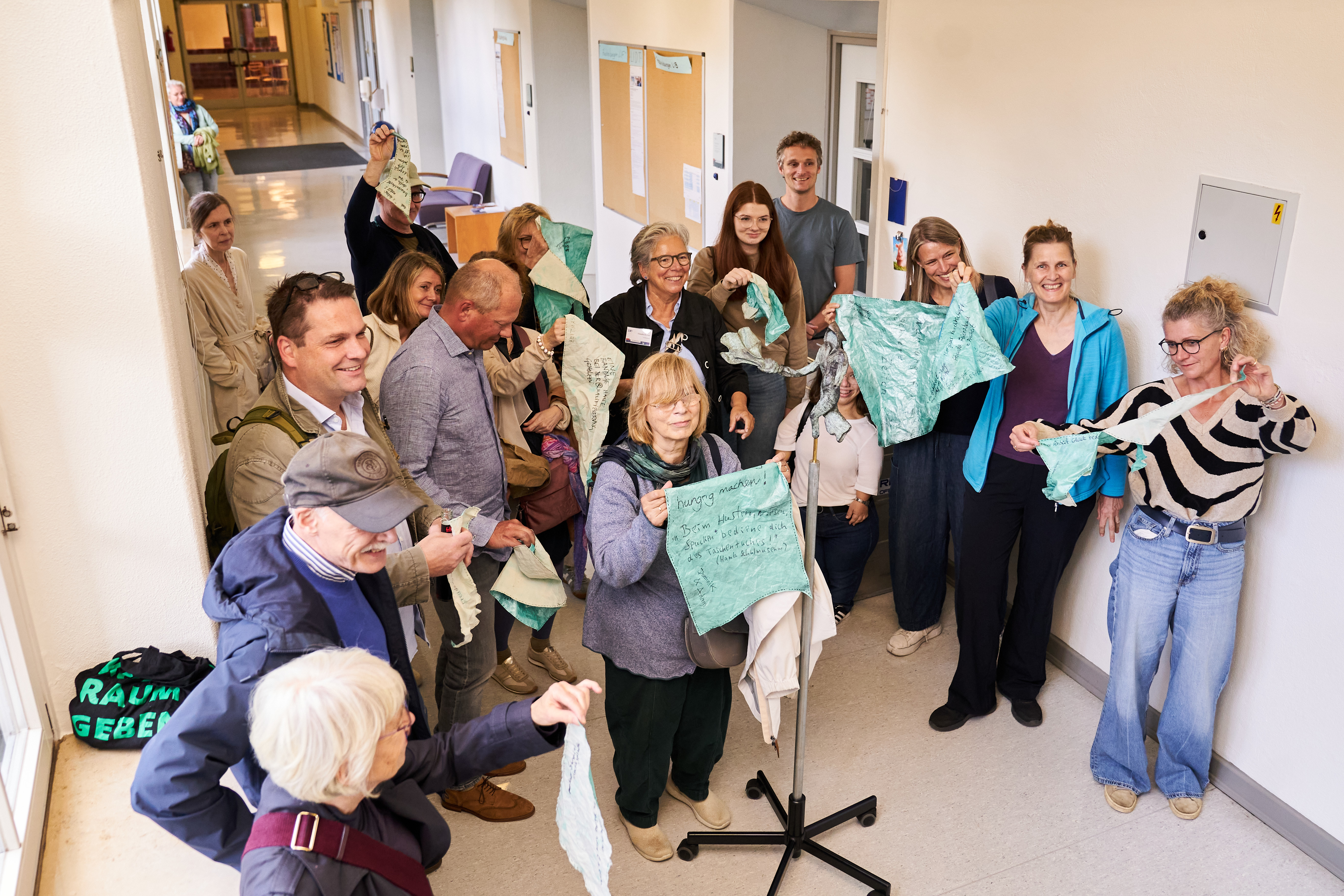 For the performative walk, I used my concept “Handkerchief” as a vehicle to make the process of active remembering tangible through audience interactions. Key elements included specially designed handkerchiefs, a Polaroid camera, loaned items from the Hamburger School Museum, and the sound of a school bell from the Weimar period. The accompanying sound piece consisted of various accounts ranging from a hundred years ago through to the contemporary period. While walking through the building, the audience listened to these accounts, which addressed the development and political and societal dimensions of teacher education in Hamburg since the Weimar period.