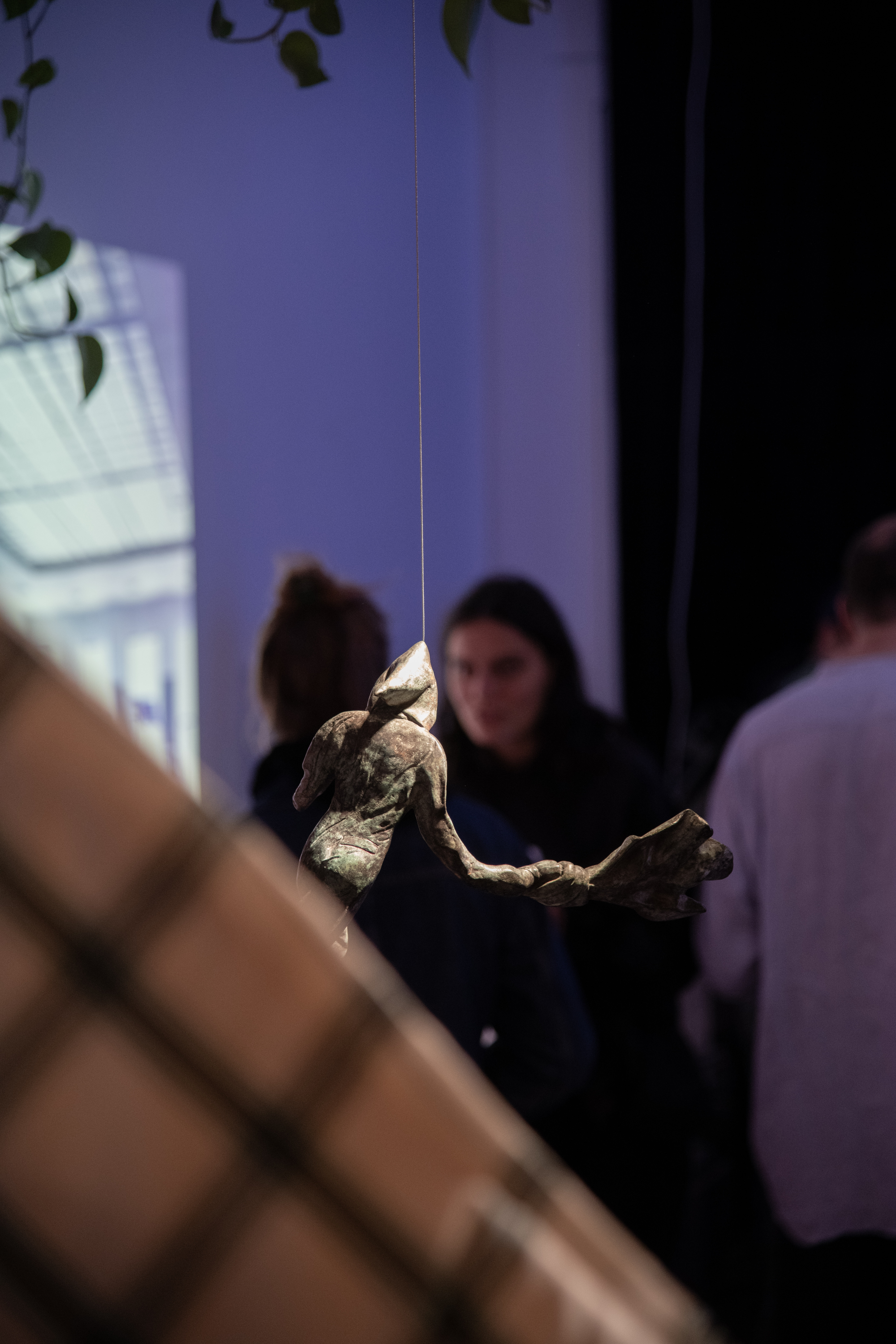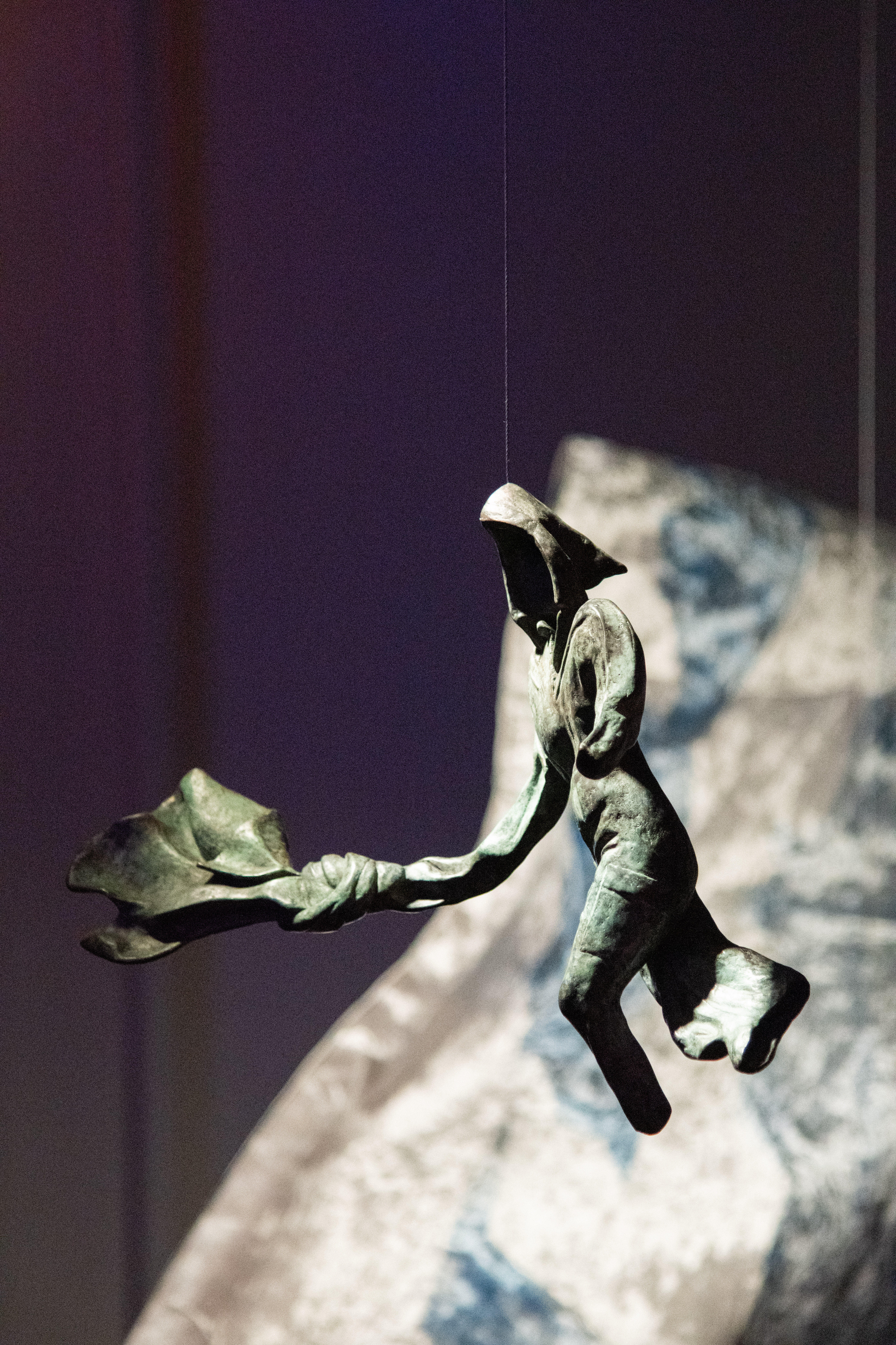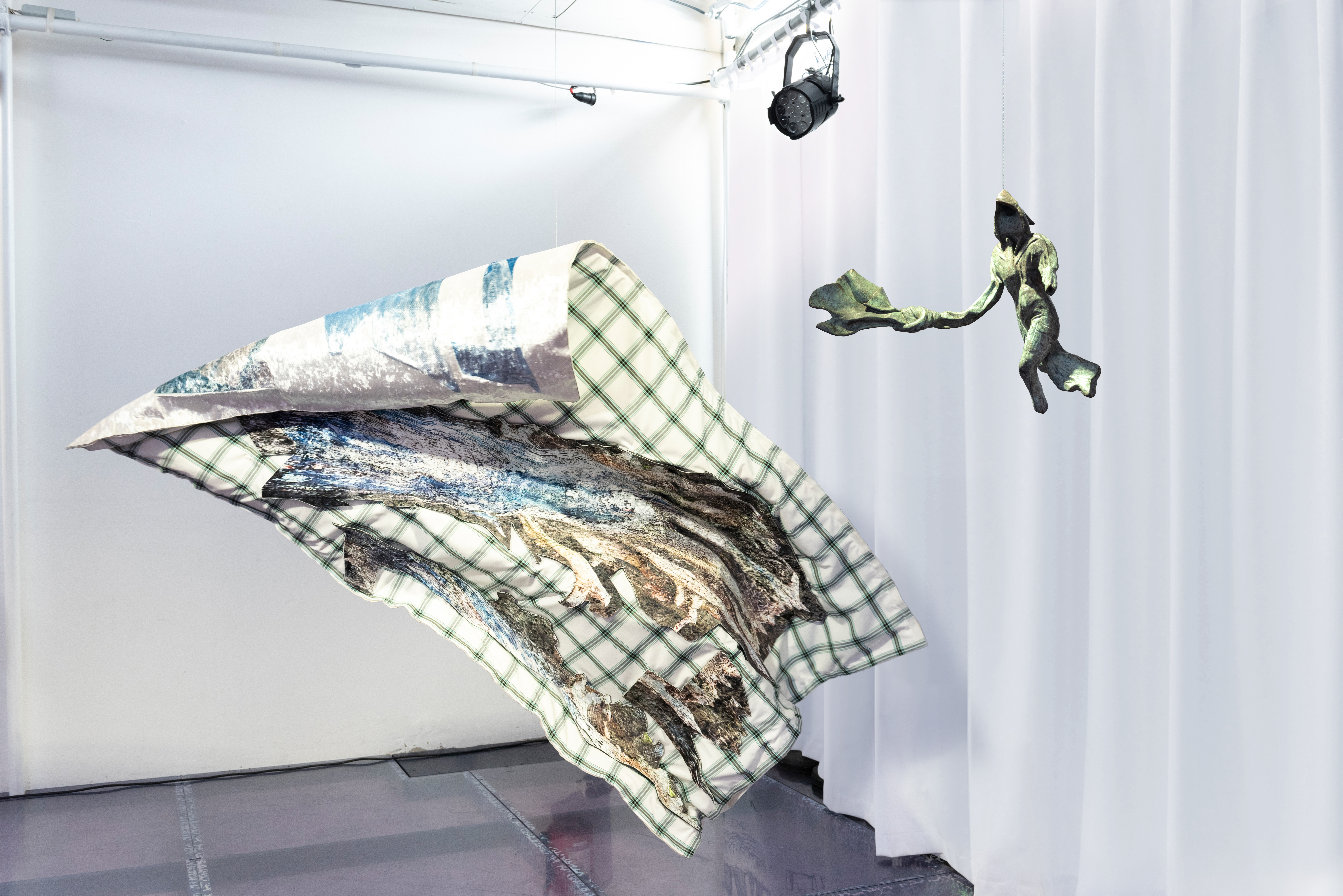 Textile, Spoken Word, Sound, Bronze Sculpture on a Mobile Stand,